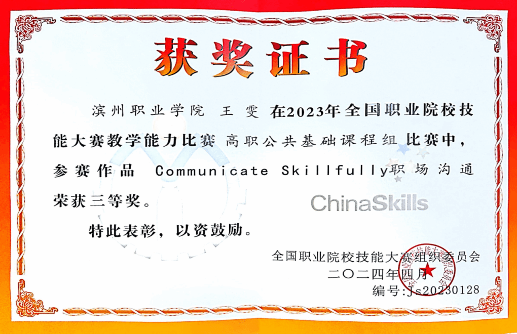 王雯老师以“双师型”教师为标杆,主动深入企业实践,汲取行业新知,锤炼专业硬实力。她积极响应公司“以赛促教、以赛促学”的号召,化身为赛场上的“金牌教练”:连续两年指导员工征战“山东省职业院校技能大赛英语口语比赛”,勇夺团体二等奖;悉心指导学子在“全国高职高专英语写作大赛”中披荆斩棘,荣膺山东赛区一等奖,用耀眼的赛绩印证了教学相长的力量。